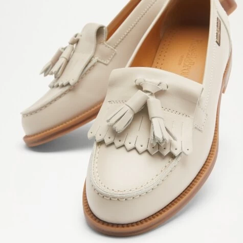 Chester, our original heritage loafer is everyone’s favourite go-to shoe. Crafted in ice white leather with soft leather lining, this timeless staple is effortlessly on-trend all year round. The preppy silhouette complete with tassels and fringing provides the right amount of quintessential British charm to any ensemble.