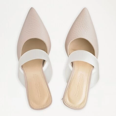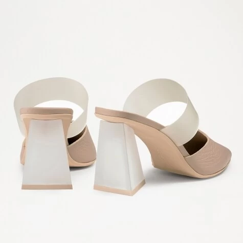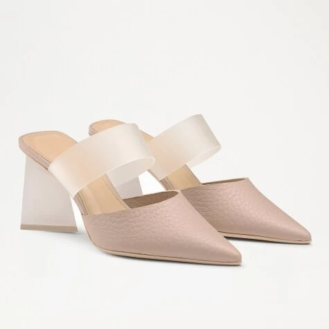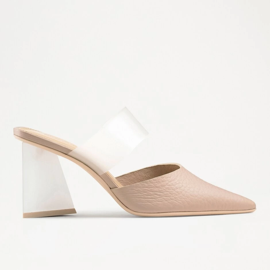 Vision offers a modern update on the pointed heeled pump. Crafted from special unlined grainy leather in a light taupe colourway, this style has been enhanced by a frosted Perspex strap across the upper offering extra support. Finished on a chunky kitten heel in a contrasting white leather, this pump will walk you through any occasion in both comfort and style.
