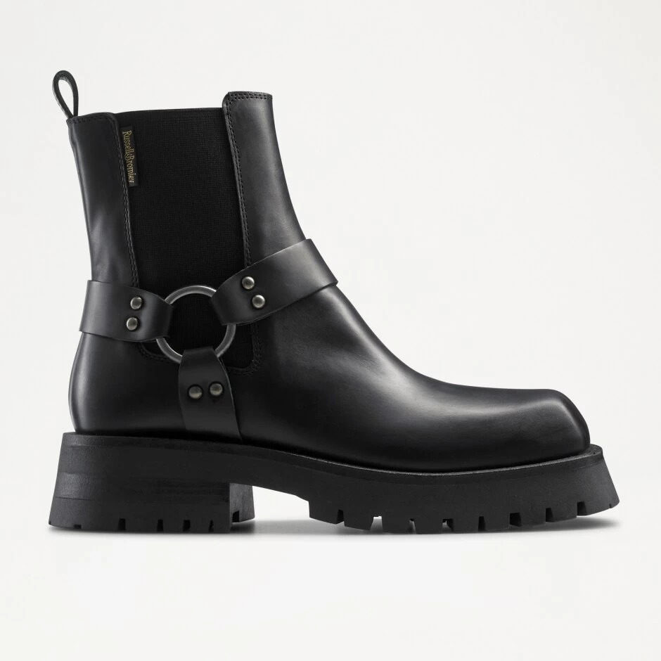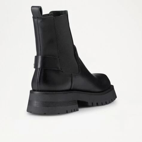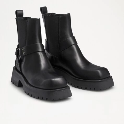 The Chelsea boot has been redefined with a modern gothic edge in Motor, our ring-detailed hybrid biker Chelsea boot. Made in Spain from black calf leather, this trend-led design comes complete with a slightly oversized grooved stacked heel for reliable durability and grip. Featuring elastic side inserts and pull-on tabs for an easy fit, the design stands out thanks to its rebellious harness ring details and studded leather wrap-around straps. It’s the perfect boot for wearable grunge glamour.