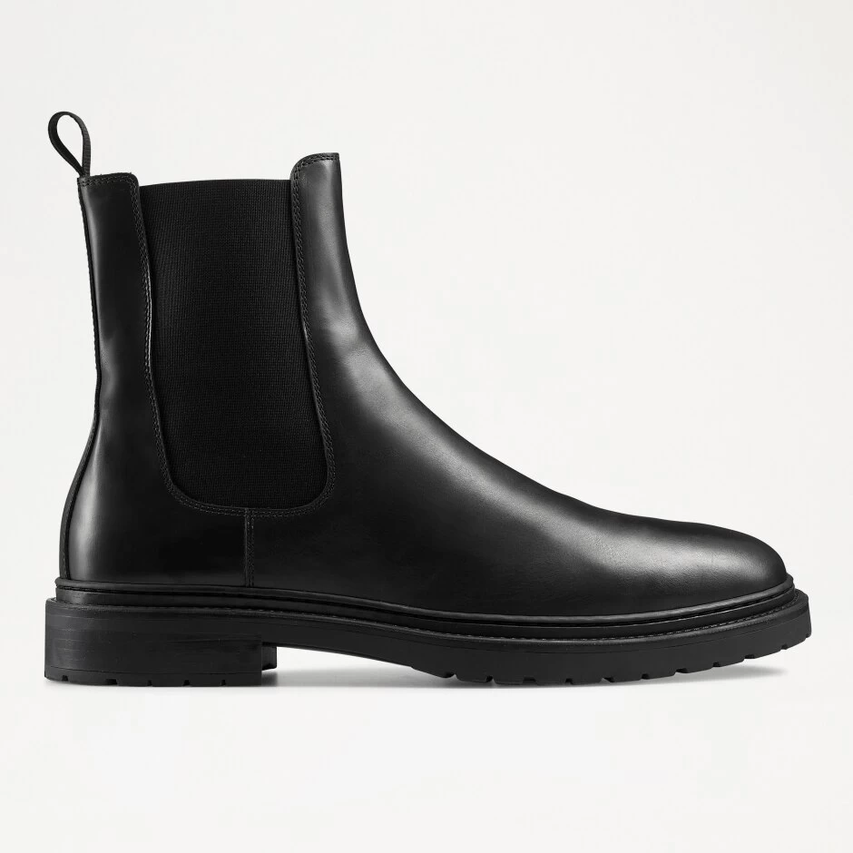 Marked by refinement and practicality, Alto offers a fresh perspective on our bestselling Chelsea boots. Made in Italy from supple black calf leather, this trend-led style features a traction cleated sole for grip and durability. The piece comes in polished black-hued leather with full leather lining and features a black fabric pull tab on the heel.