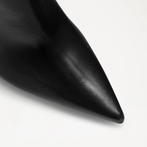 Embracing the dramatic shapes of this season’s trends, aptly named ToThePoint takes the classic long boot silhouette and adds elegantly pointed details. Crafted in Italy from smooth black nappa leather, this seamless design rises just below the knee enhanced by an extreme pointed toe and thin stiletto heel. Finished with an inside zip fastening that effortlessly upholds the structure of the silhouette, ToThePoint will fast become a staple wardrobe addition.