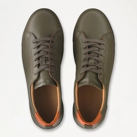 A relaxed sneaker with a preppy influence, Relay is this season’s everyday casual staple. Produced in Portugal from soft sage green leather, the style has a retro appeal thanks to its clean shape and sporty panelled sections. Stitch details across the welt and upper give the look a heritage feel, while the tan-hued ankle cuff provides added visual interest. Look out for the textured toe panel at the front of the shoe, and debossed logo detailing on the tongue. The shoe comes fully leather lined in a biscuit hue, and features practical pull tabs.