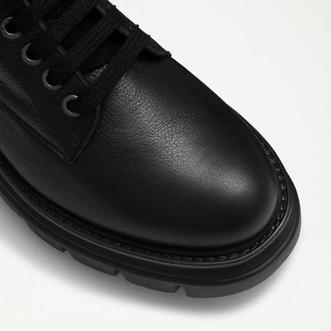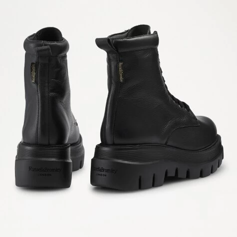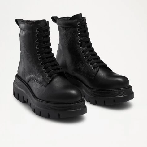 Connecting two of our bestselling chunky boots Combat and Conquer, aptly named Connect boasts the ultimate stomper silhouette. Crafted from buttery soft black calf leather, this ten-eyelet lace-up has been detailed with functional leather pull tabs that allow you to pull on and off with ease. Set on a chunky cleated sole with durable rubberised mudguards, this everyday staple will walk you through all winds and weathers in style.