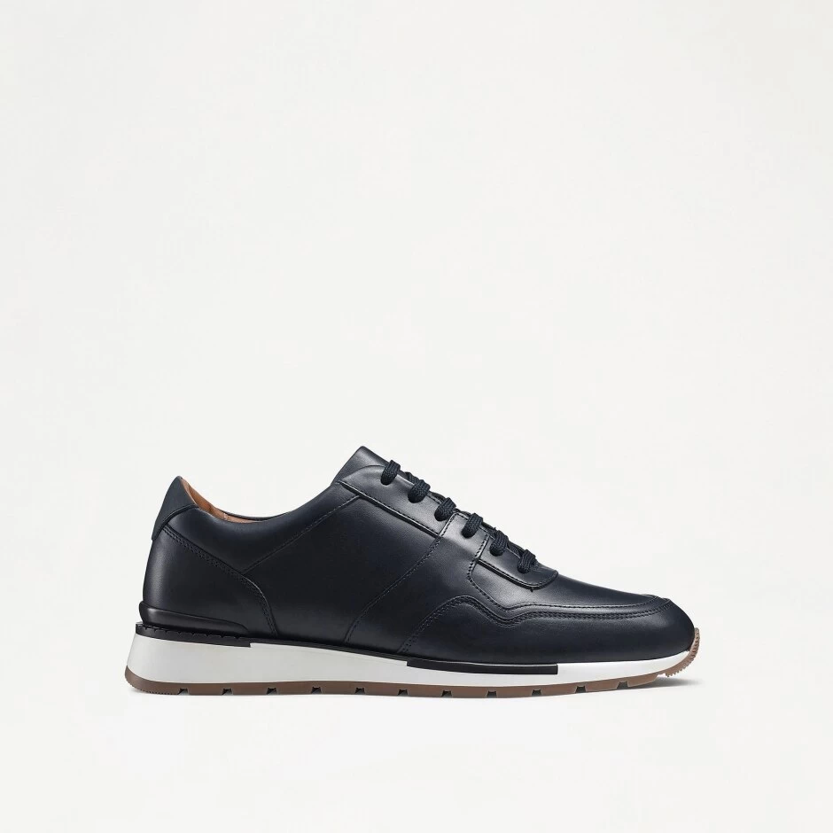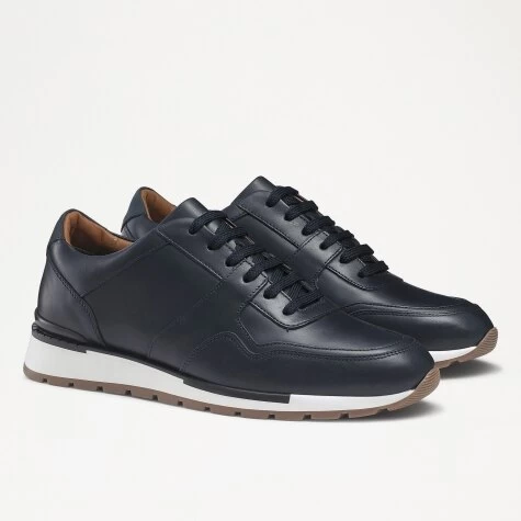 Lomond is the next generation of luxury leisurewear. Crafted in Portugal from navy waxy calf leather, this monochromatic style has been detailed with matching navy laces and a contrast sneaker sole. This use of colour blocking takes this sneaker beyond casualwear this season, we love to wear ours with relaxed, vintage-inspired tailoring.