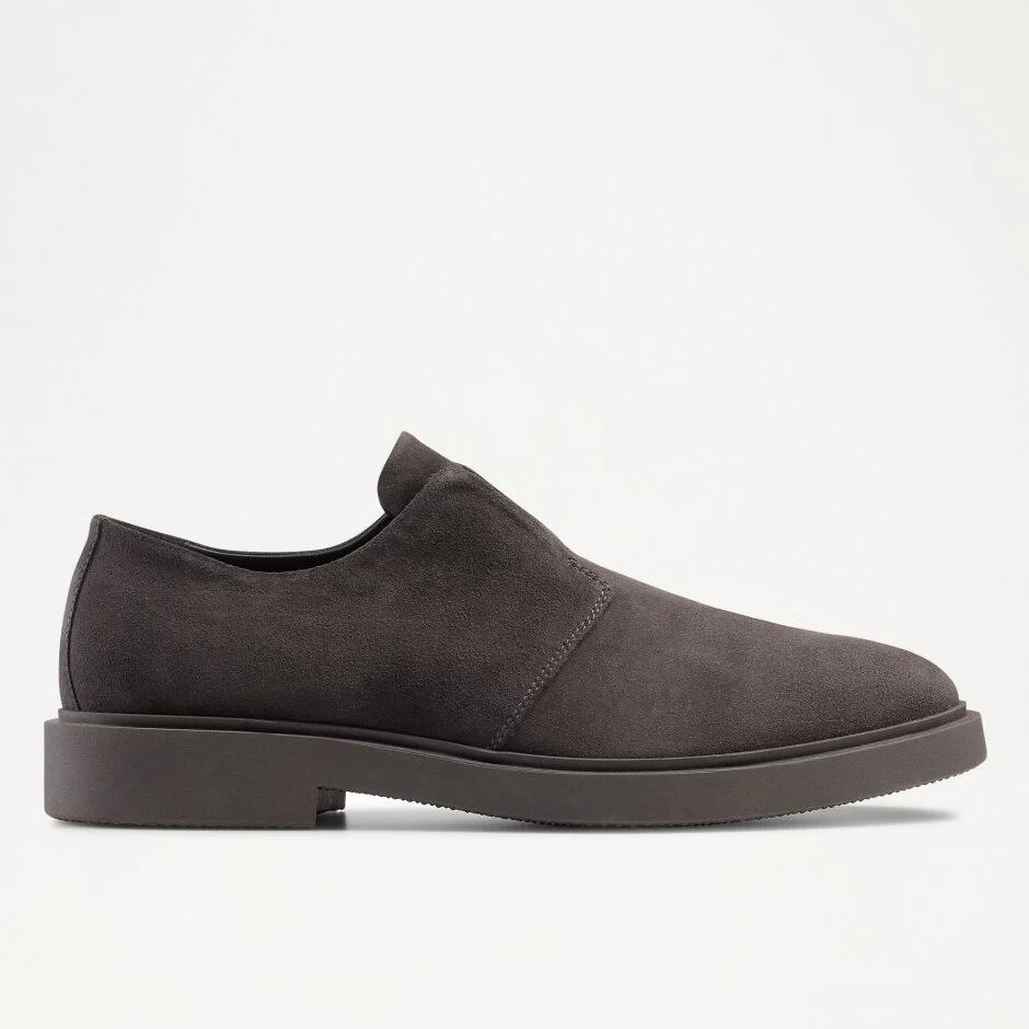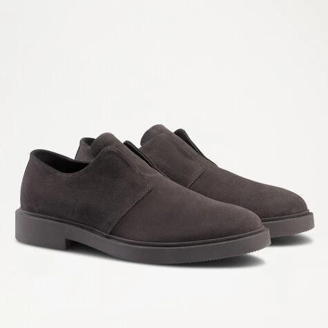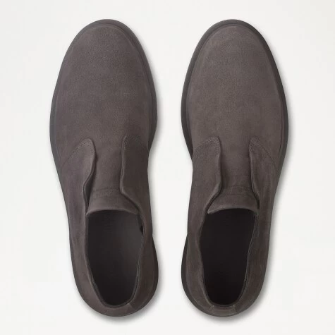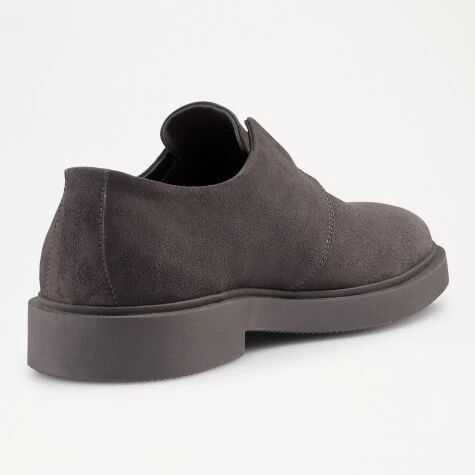 An elevated update to our bestselling derby shoe, Corato is a laceless round toe design. Constructed in Italy from supple grey suede, it’s an ideal piece to add instant sophistication to any laidback look. It features stitched details across the wrap-around quarter, and sits on a cushioned manmade sole with stack heel. Contrast tonal finishes between the light grey sole and darker grey suede vamp add further visual interest.