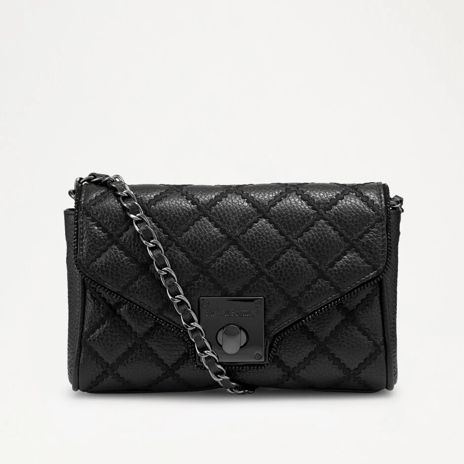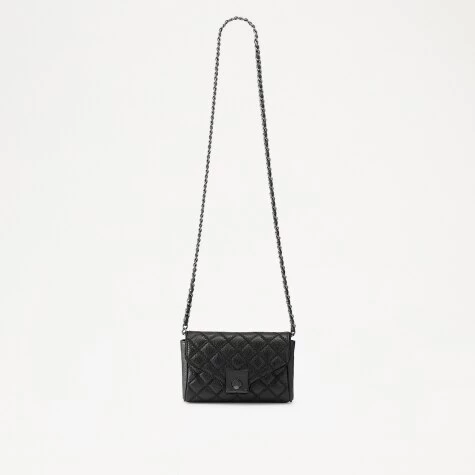 Embracing the resurgence of chic geometric patterns, our quilted style Promenade ticks all the boxes this season. Crafted from black stitched grained calf leather, this luxurious crossbody design has been detailed with a subtle crystal trim and jewellery-inspired chain strap, interwoven with a fine strand of rich black leather. Finished with a gunmetal turn-lock closure, this style will keep all your essentials safe.