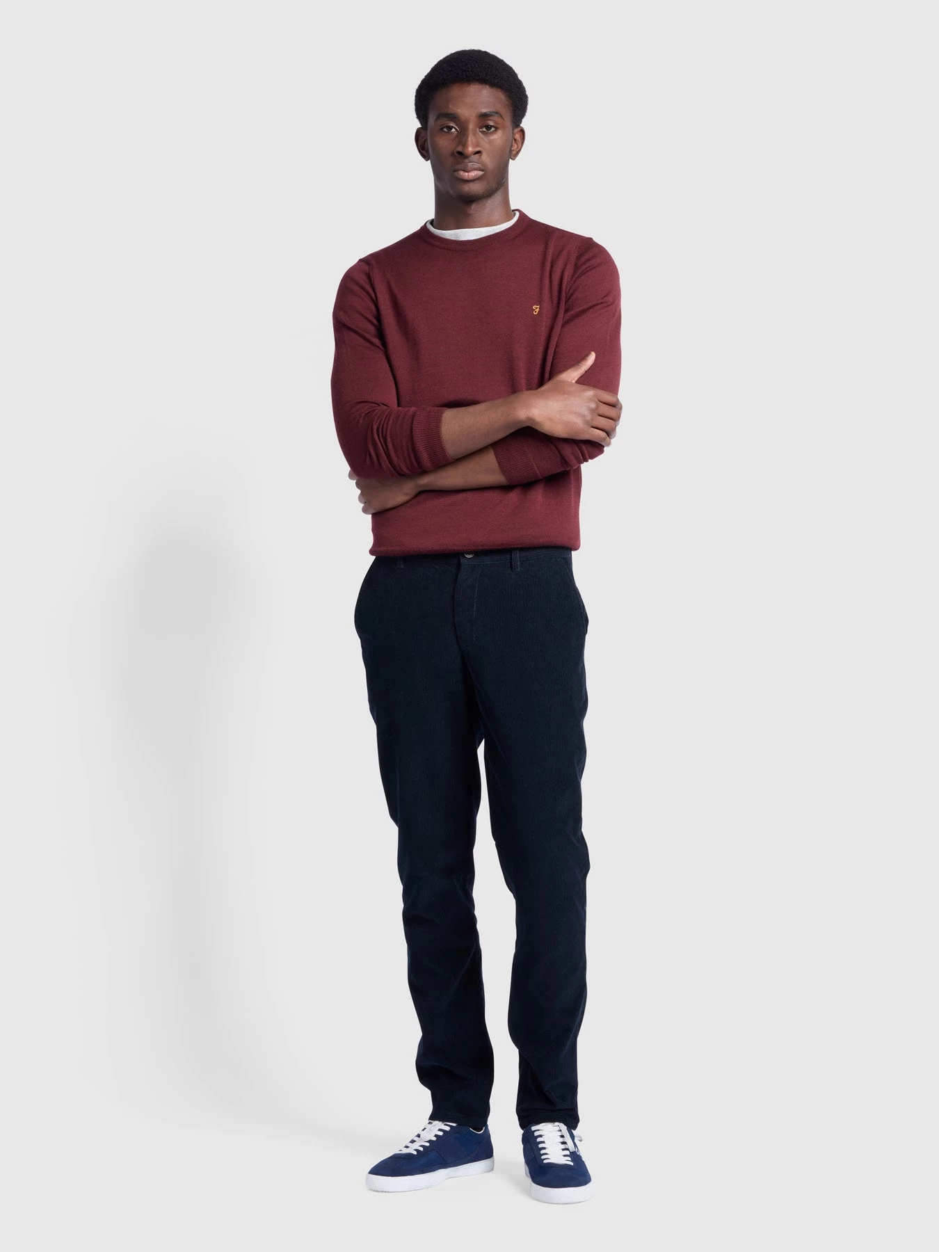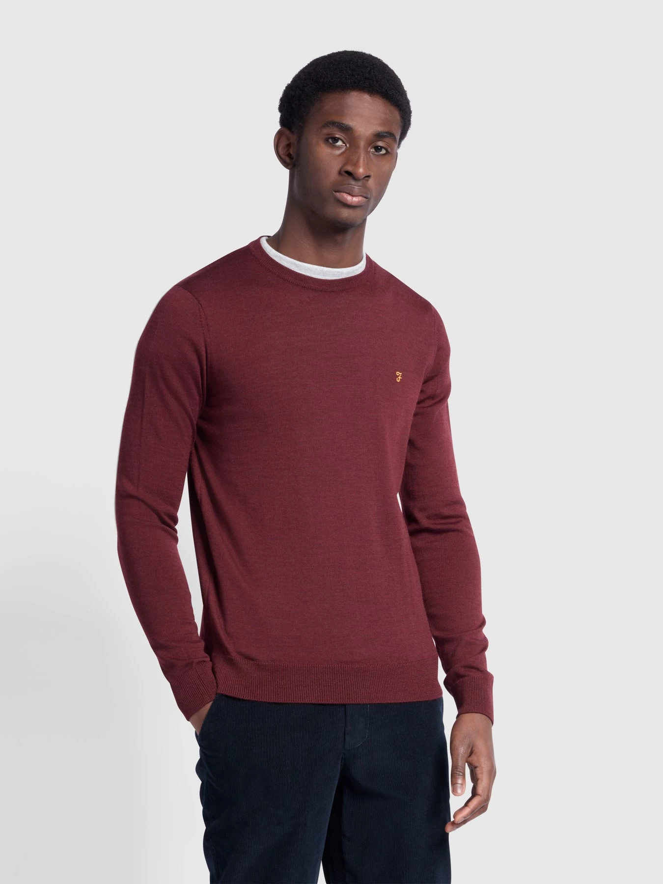 Mullen Merino Wool Crew Neck Jumper In Farah Burgundy