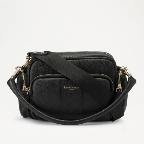 A chic take on the vintage-inspired camera bag, new style Snapshot is perfect for everyday wear. Crafted from grainy black calf leather, this super-function silhouette boasts a multi-pocket design around the front and sides of the exterior. Accompanied by a removable tonal black fabric strap with adjustable roller, this versatile design can be styled countless ways all-year-round.