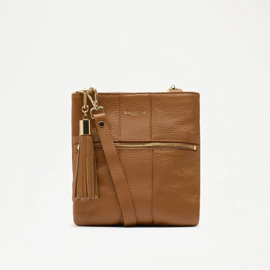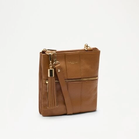 Inspired by our much-loved Robin crossbody bag, Rogue is a miniature version with chic appeal. Crafted in Spain from tan grained leather, this feature piece is as practical as it is elegant. Featuring a removeable tassel strap and polished gold hardware, it oozes glamour credentials while being wearable enough to throw over your shoulder at any time. Small yet perfectly formed, it comes with a front side pocket for seamless storage, and a zipped top closure for easy access. It’s the perfect mini crossbody bag for every and any event.