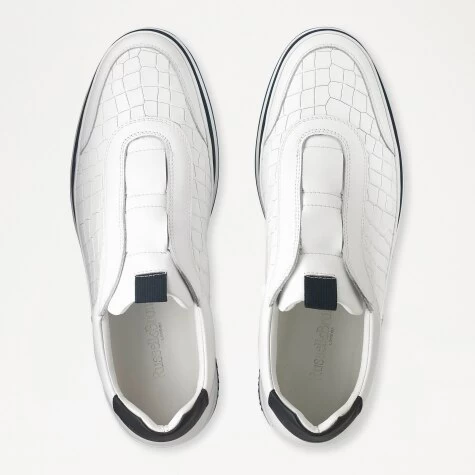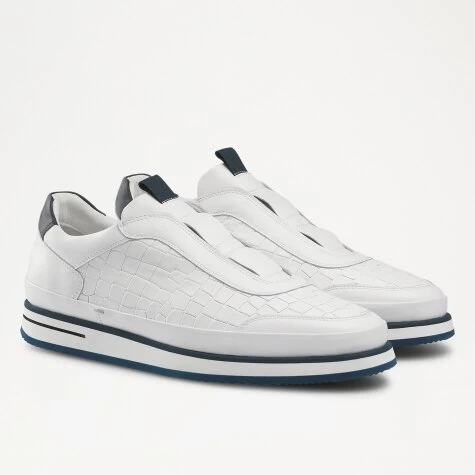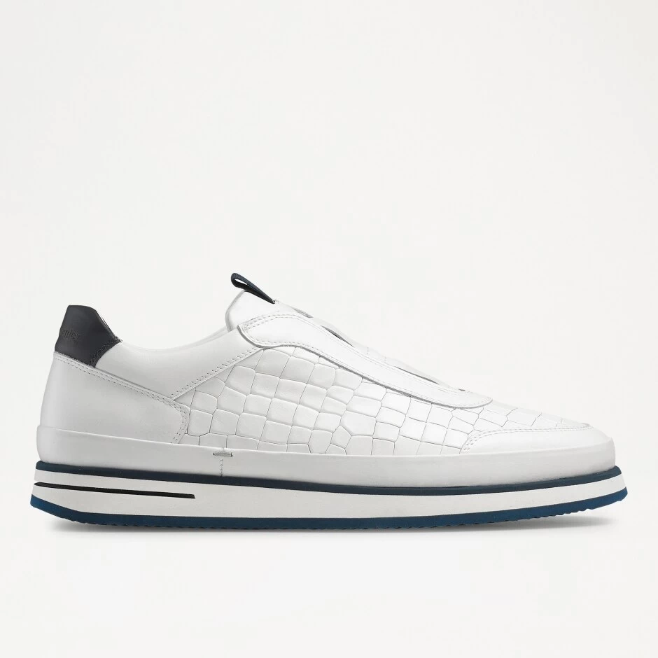 .San Giusto is the ultimate smart sneaker hybrid. Crafted from hand-dipped white crocodile-stamped leather, this versatile silhouette boasts a sleek laceless upper fused with a sports-inspired sole. Perfectly treading the line between formal and casual, this durable design offers effortless dawn-to-dusk styling with a touch of luxury.