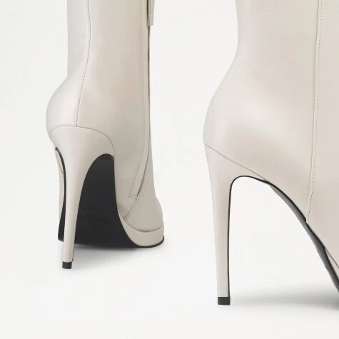 Step into a new era of power dressing this season with stiletto boot Livingitup. Crafted in Italy from soft white calf leather, this striking style features an exaggerated pointed toe, stiletto heel and concealed single platform for ease of wear. The elongated silhouette sits just above the ankle, with a practical inside zip fastening ensuring a secure fit. Modern and minimal, Livingitup is sure to become a new wardrobe staple.