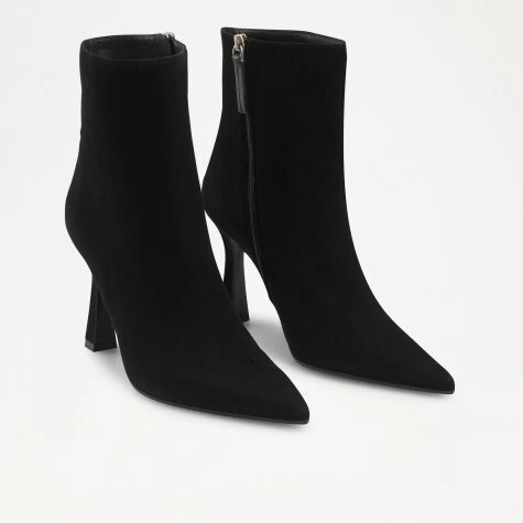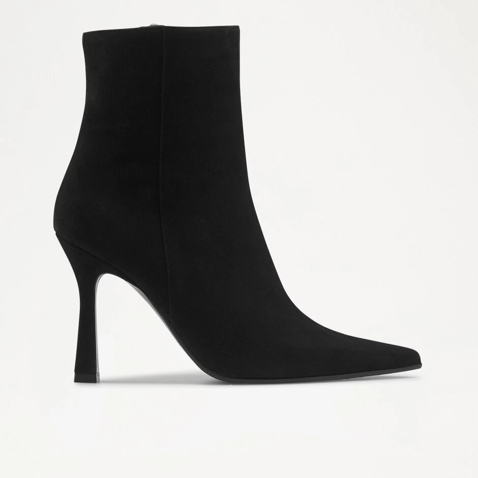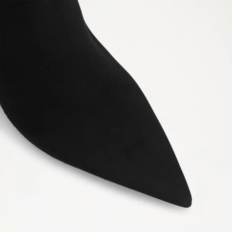 Bringing back the classic stiletto boot, say hello to our staple silhouette Pointboot. Crafted from smooth black suede, this seamless silhouette rises just above the ankle on a sturdy suede-wrapped stiletto heel. Finished with an extreme pointed toe and rubber laid sole for durability; zip-up, pull-on and pair with an array of looks no matter the occasion.