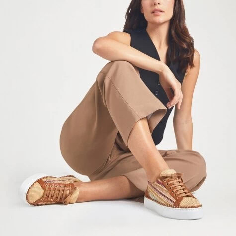 Prepare to look ultra-chic in leisurewear worthy of high temperatures. Whip It is a statement sneaker crafted from raffia with a lightweight sole. The multi-colour raffia and stitching details make it instantly recognisable and keeps you ahead of the trends.