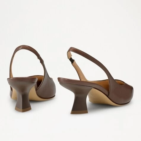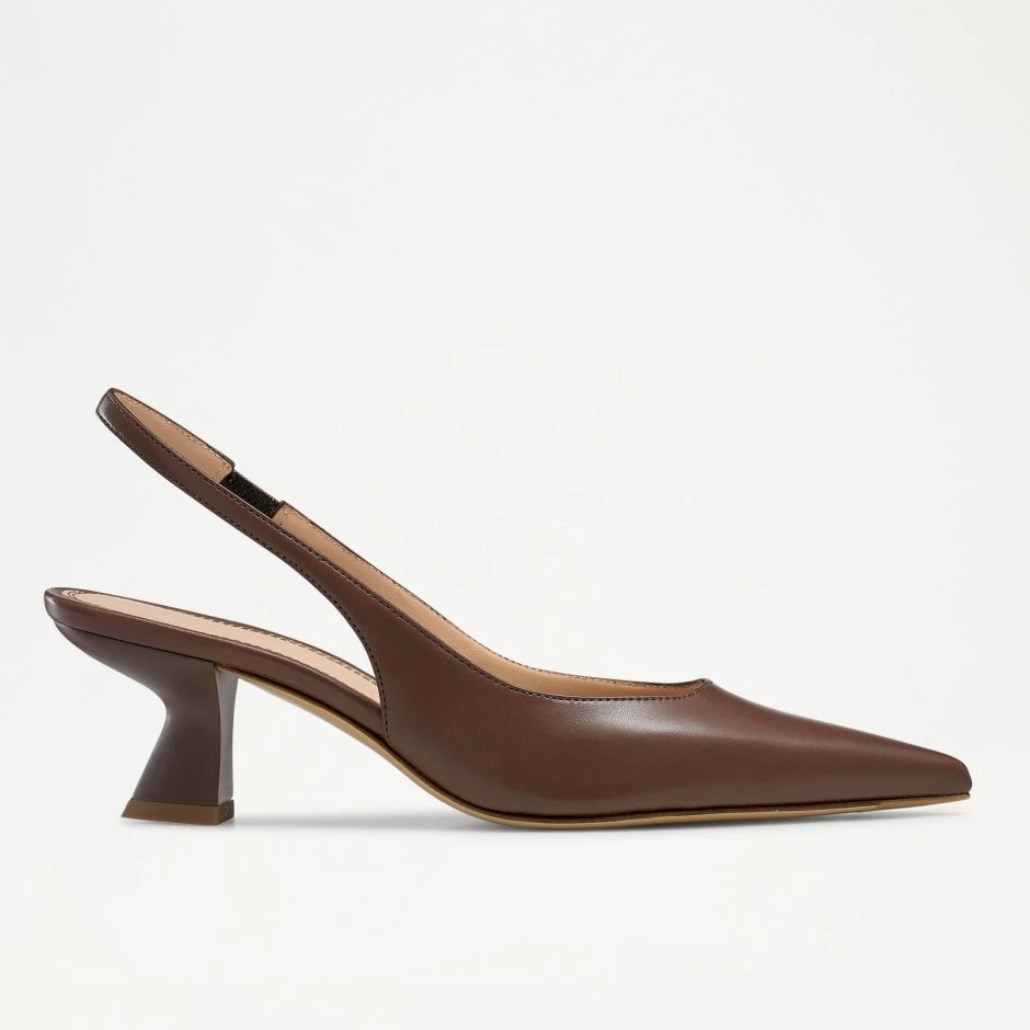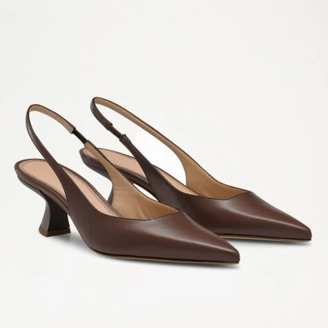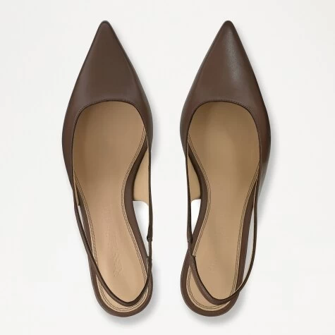 Bringing back the Y2K kitten heel, Slingpoint is a comfortable way to wear the heeled slingback trend. Crafted in Italy from Mocha leather, this chic pump has been set on a vintage-inspired kickback flared heel wrapped in matching Mocha leather. Further detailed with an elongated pointed toe and classic square-cut vamp, this elegant silhouette will effortlessly enhance any ensemble.