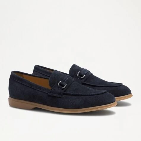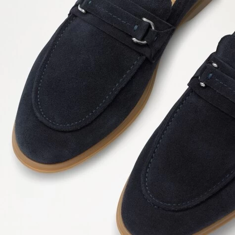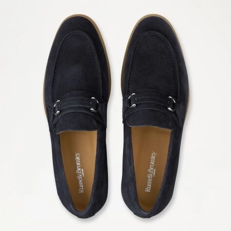 Padrone takes the urbane sophistication of the classic moccasin and sets it on a cushioned gum sole for heightened comfort and durability. They’re crafted in Italy from deep navy suede to a round toe shape with an elite upper finished with handstitched snaffle and metal rings.