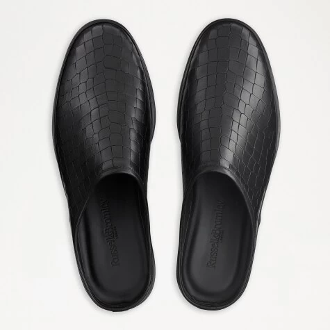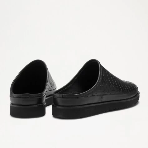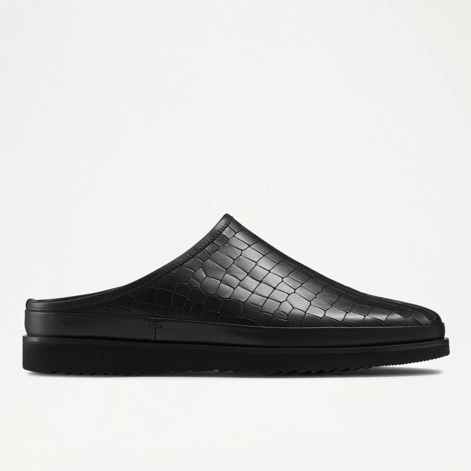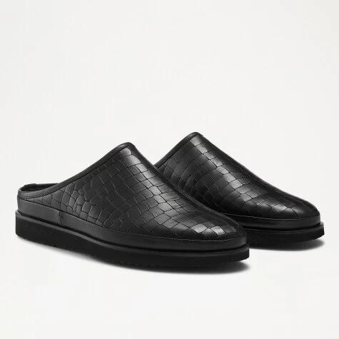 San Cataldo is a luxurious take on the classic sneaker mule. Crafted from buttery soft black crocodile print leather, this warm weather approved design boasts a backless silhouette and accompanying breathable leather lining. Detailed with a smooth leather trim and blind embossed Russell & Bromley logo on the sole, slip into any occasion with this smart sneaker design.