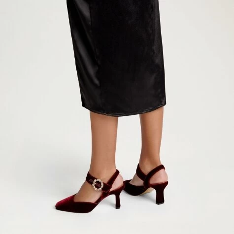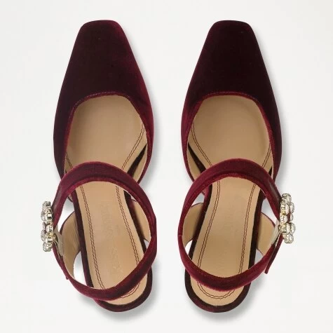 Ease into occasion dressing with our luxurious court shoe, Strictly. Crafted in bordeaux red, the colour of the season, this velvet design comes set on a comfortable mid-heel. This chic piece is adorned with a gem embellished buckle and detailed with a snipped square toe. Finished on a leather-laid sole with breathable leather lining, our elegant silhouette will walk you through dawn till dusk in style, no matter the occasion.