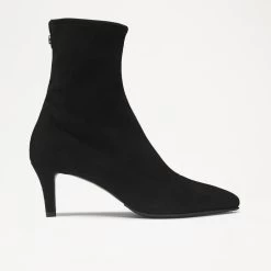 This season the streamlined sock boot is back, meet Hot Sox. Crafted in Italy from rich black stretch suede, this sleek elongated silhouette hugs close to the ankle and has been detailed with a subtle logo stud. Set on an elegant heel, we love this pull-on style worn with dresses, jumpsuit and more.