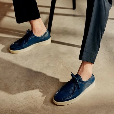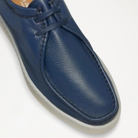 Hove M is a luxurious yet laid-back lace-up derby designed to walk you through the everyday. Crafted from rich double-faced calf leather in a navy blue hue, this style boasts a buttery soft, sumptuous feel from top to toe, whilst a statement square toe detail has been accentuated by enlarged piping and intricate stitchwork. Finished on a translucent, leisure-inspired gum sole creating a clean elevation, Hove M offers both style and durability with each step.
