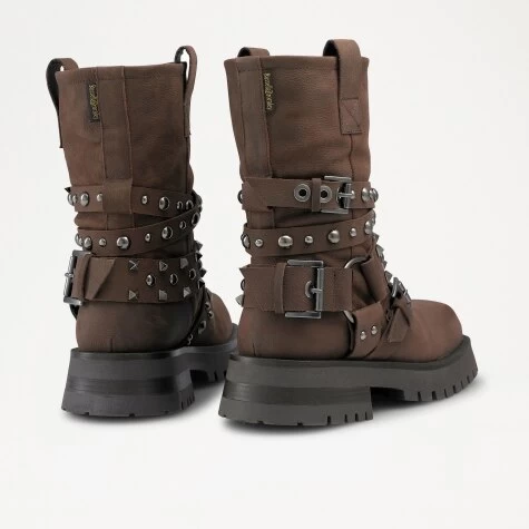 This season the biker boot is back, and new style Harley is an elongated, chic example. Crafted from black calf leather, this mid-calf style has been detailed with chevron-quilting, a chelsea-inspired elasticated side panel and double pull-on tabs. Set on a durable black rubber lug sole, we love this style worn as a contrast against maxi dresses and pleated skirts.