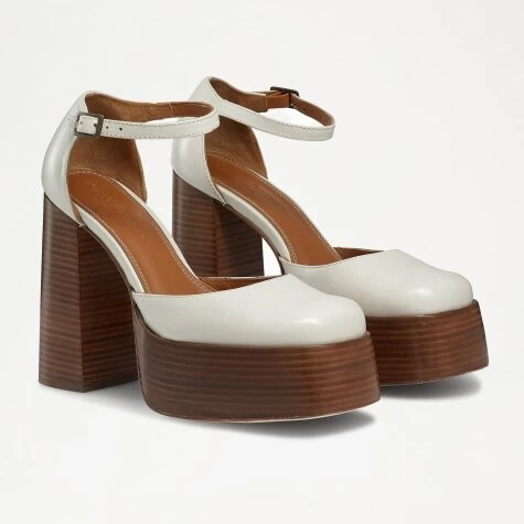 A super high heel can effortlessly switch up any look and Blondie is a great place to start. Crafted from smooth bone-hued leather with an exaggerated high wooden platform heel, its rounded toe and simple ankle strap are a nod to a cool seventies aesthetic whilst remaining on-trend.
