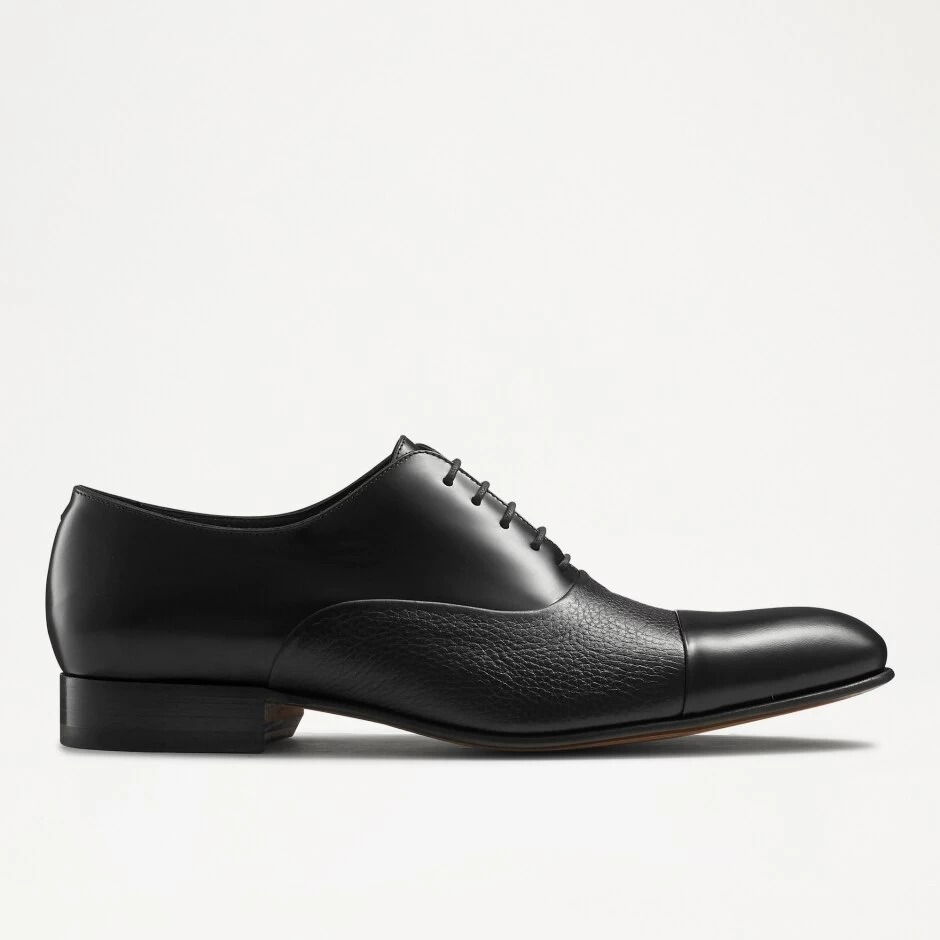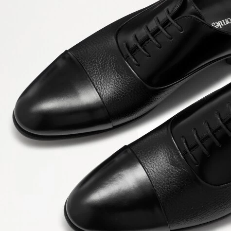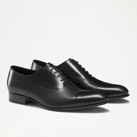 Enhance your formal styling with our new Oxford silhouette Stratus. Expertly handcrafted in Portugal from soft black calf leather with luxurious accents of smooth deerskin, this four-eyelet lace-up is further detailed by a channel-stitched full leather sole and half rubber top piece.