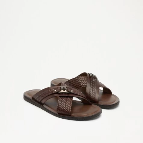 An intricately designed sandal, Vision will add a sartorial flair to any warm-weather wardrobe this season. This sandal starts life in Tuscany and is expertly handcrafted from dark brown, weave-stamped calf leather in a criss-cross design that has been further detailed with a corresponding gunmetal buckle. In addition, bouncy leather footbed ensures comfort whilst the rubber sole increases traction when hopping from beachside to bar.